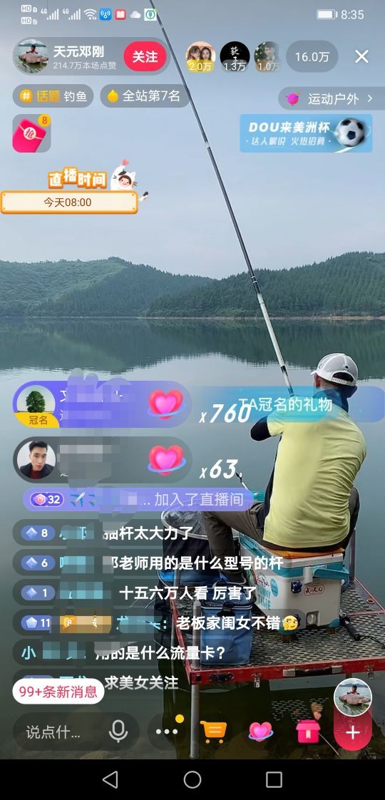 邓刚老师钓鱼直播人气突破16万,抖平台钓鱼直播第一人