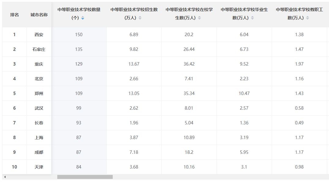 中等职业技术学校数量排行发布:西安凭啥第一?