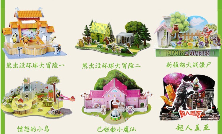立体拼图可选样式非常多,城堡类,卡通动漫类,军事模型类等等。