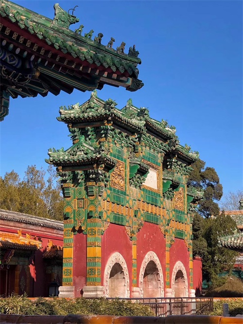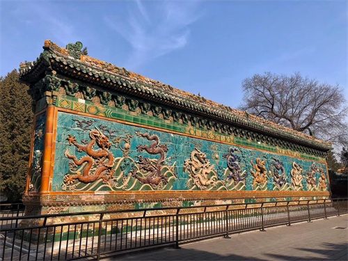 九龙壁属影壁的一种,是传统建筑中用于遮挡视线的墙壁。北京北海九龙壁是极有特色的一座,两面有龙,升降各异,互不雷同。(环球网文旅特约作者:米广弘摄并文)