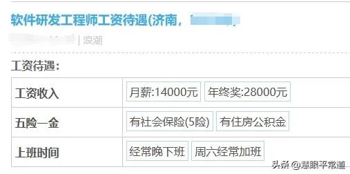 济南的一位软件研发工程师则分享了他的收入:月收入14000元,年终奖更是高达28000元。五险一金、带薪休假等福利一应俱全,但每周六的加班也成为了他工作的常态。技术研发岗位的辛苦,在这里得到了充分的体现。