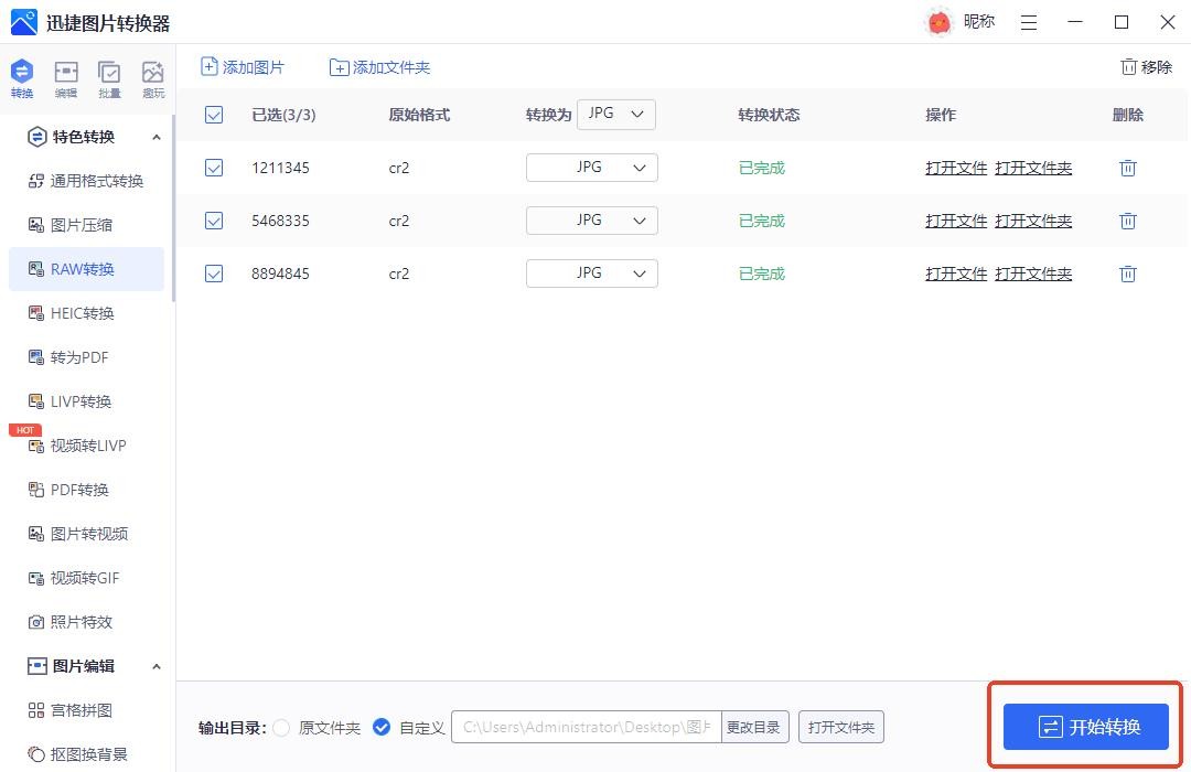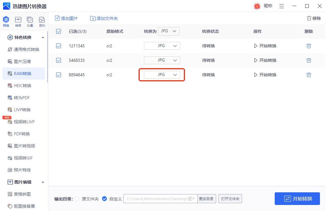1、通过『迅捷图片转换器』将cr2批量转换成jpg