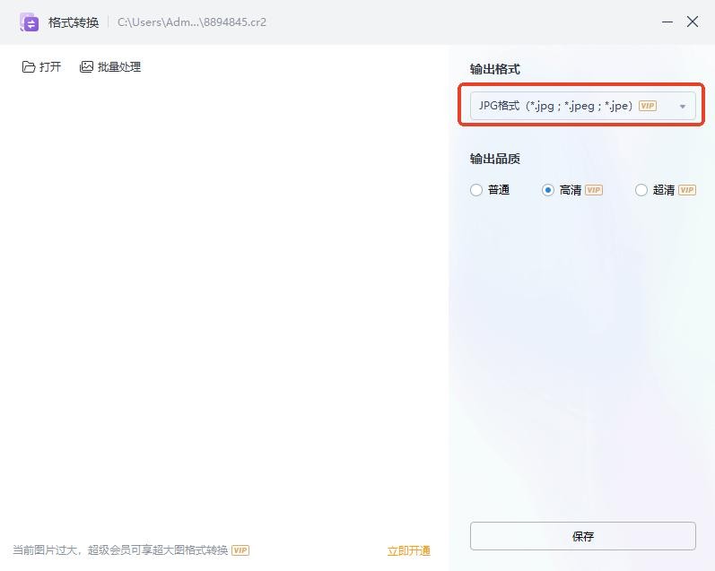设置输出格式为JPG,还可以调整输出的图片品质,这个功能需要会员才能导出图片,最后点击【保存】即可。
