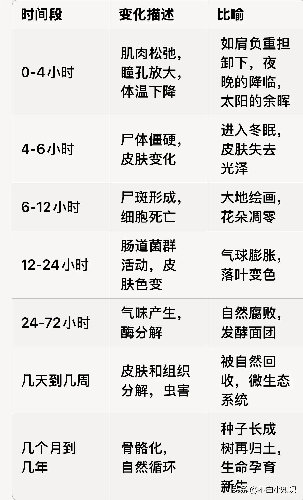亲爱的读者们,生命是美丽的,而死亡则是生命中不可分割的一部分。让我们温柔地探讨,当我们离开这个世界后,身体会经历怎样的变化。这就像一个奇妙的旅程,从一个阶段到另一个阶段。