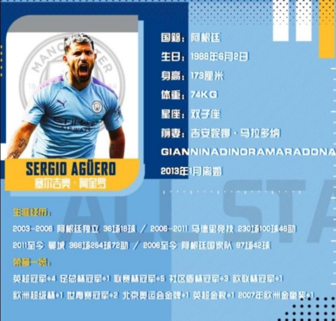 名声大噪后,阿圭罗需要更大的舞台来展示自己,于是在2011年夏天以4000万欧元的转会费加盟英超曼城。在加入曼城的首个赛季,阿奎罗与球队无缝衔接,在进攻端阿奎罗更是火力全开,代表曼城出战各项赛事打进30球,还帮助曼城时隔44年获得了英超冠军,一直到今天,阿奎罗在曼城已经度过了9个赛季,阿根廷球星跃居成队内的射手王,同时还是英超进球最多的外籍球员。回顾阿圭罗成长之路,你会发现他其实很平凡,但同时也很伟大。