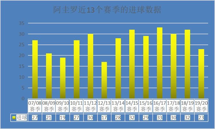 阿奎罗作为当今足坛最为出色的前锋之一,他有着超强的得分能力,本赛季他代表曼城出战30场比赛打进23球。稳定的发挥对曼城来说是至关重要的,参考阿奎罗近13个赛季的表现,我们可以看出阿奎罗自07-08赛季以来,其中有11季的进球数突破20大关,只有2009-10赛季(19球)和2012-13赛季(17球)未能突破20+。而阿奎罗近7个赛季的表现阿奎罗的进球球基本在30球附近波动,可以看出阿奎罗的得分能力非常稳定,并没有随着年龄的增长而出现极具下滑的情况。
