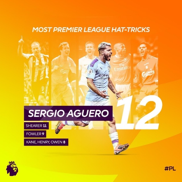 而在曼城客场6-1狂胜阿斯顿维拉的比赛中,阿圭罗火力全开,全场比赛上演了帽子戏法,成功超越枪手名宿亨利独享英超历史外籍射手王的宝座,并以12次帽子戏法超越阿兰-希勒成为在英超联赛戴帽最多的球员,一场比赛创造多个纪录,阿奎罗在不断刷新历史。