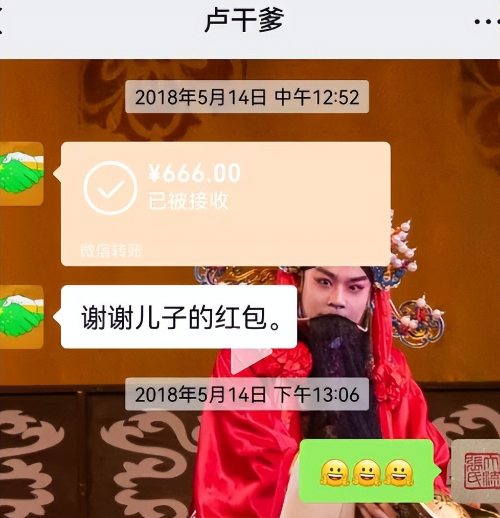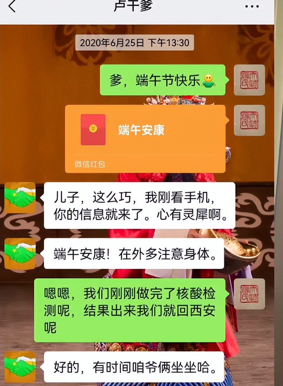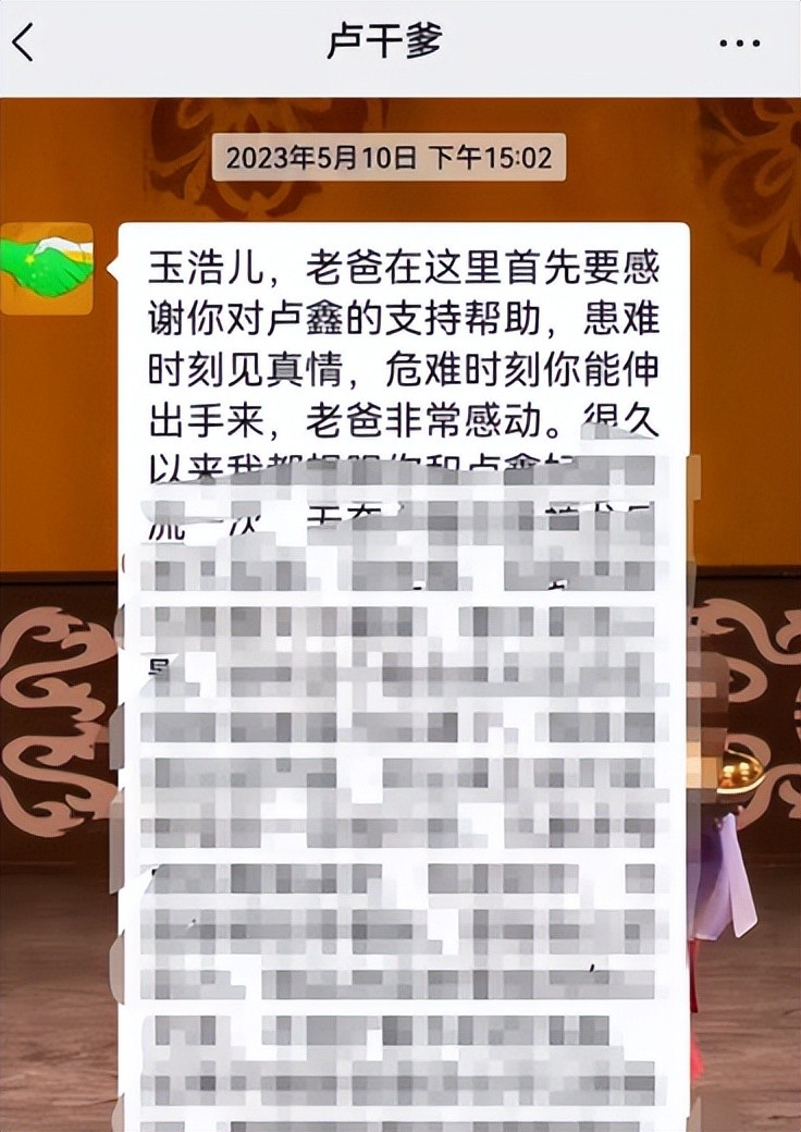 比起卢鑫的空口白话,玉浩直接是晒出了聊天记录,每当节日的时候,玉浩作为干儿子,都会发红包表示心意。