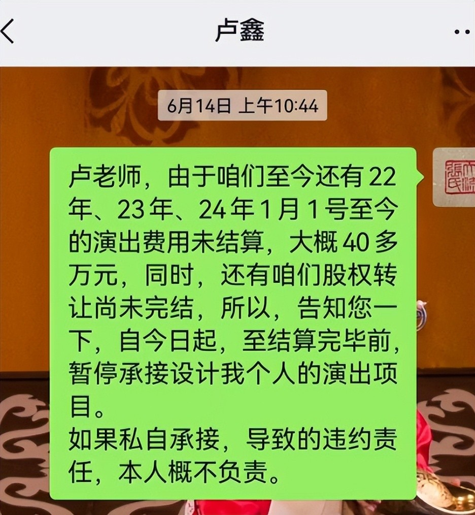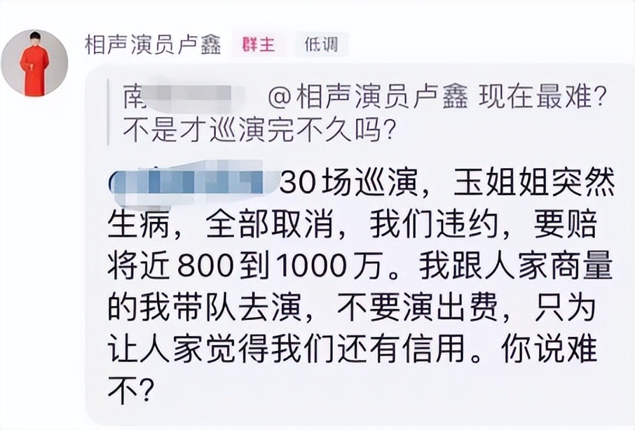 什么装病不演出,导致赔钱等行为,这些要是真的,那真想对卢鑫说一句,你真是受苦了。