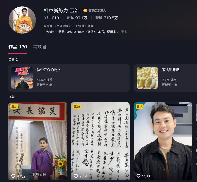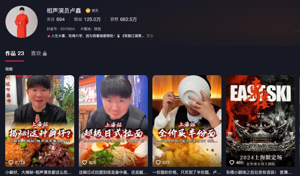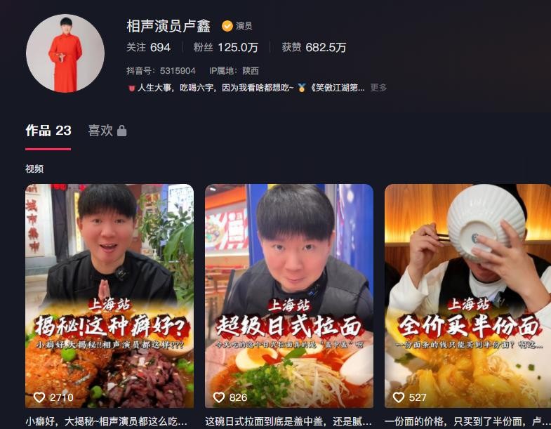 靠着说相声积攒的名气,卢鑫的短视频被许多人关注。