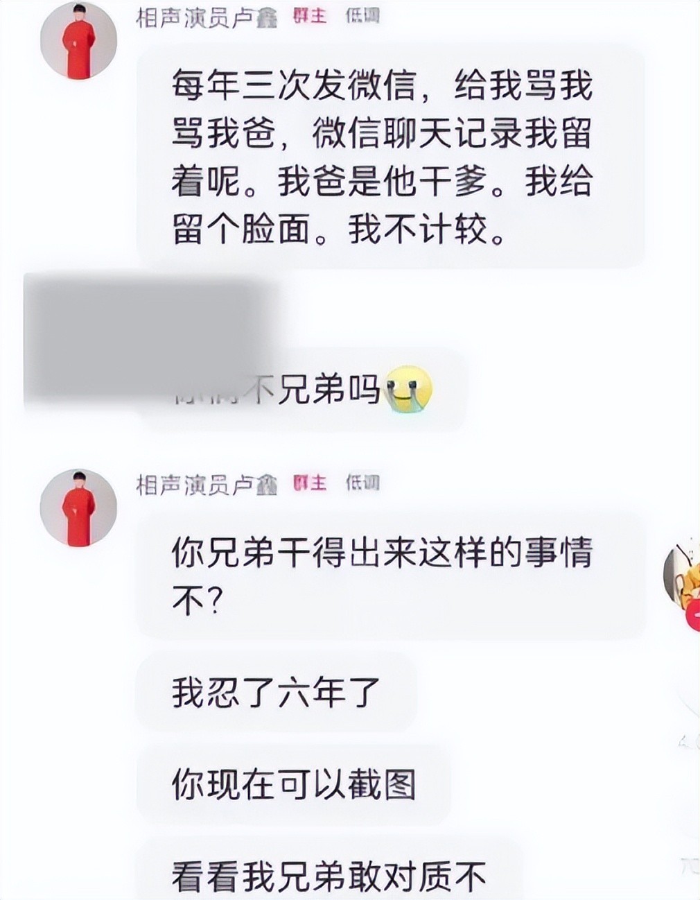 通过玉浩的爆料,我们可以发现,群里的言论的确有些过分,一个相声粉丝圈,居然充满了污言秽语的辱骂。