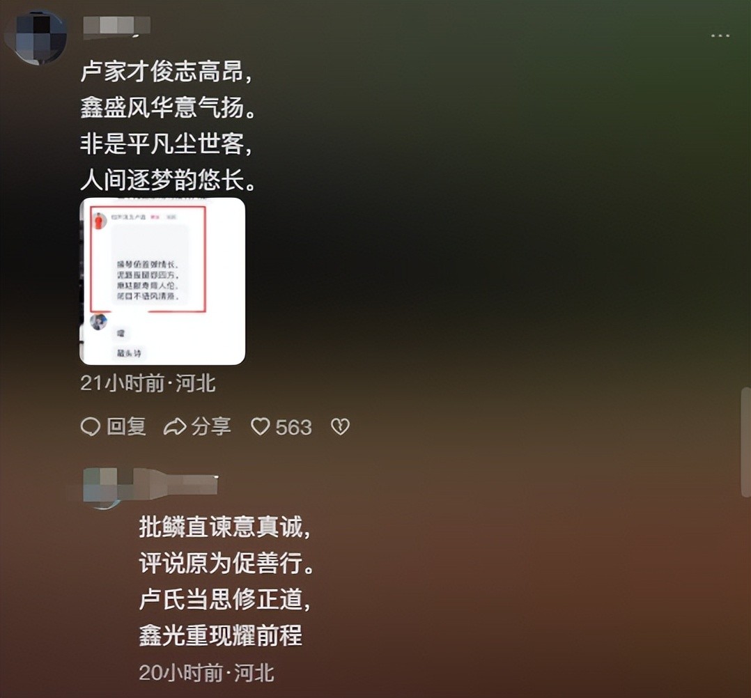 这起风波过后,卢鑫属实是尝到了流量的甜头,他的评论区来了许多的“不速之客”。