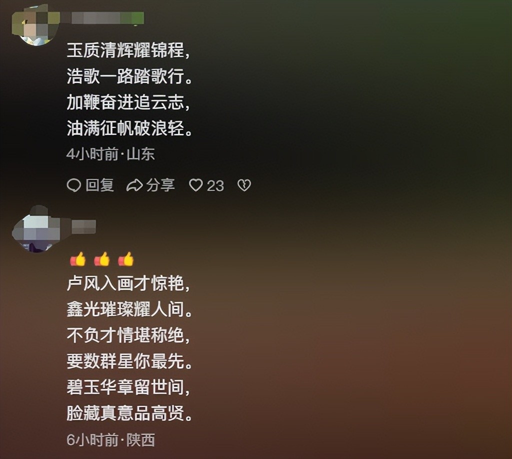 卢鑫的评论区沦陷后,大神网友们也是频频模仿他,也回敬了好多藏头诗。
