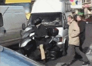 1、天天开心,搞笑动图,美女你怎么开车的,摊上事了吧?