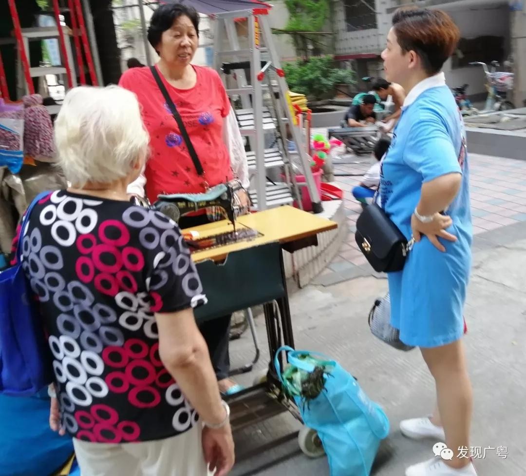 除了时装店,红色衣服阿姨的缝纫机路边摊,也大大方便了街坊们。大家需要改裤脚、改衣服什么的,都会来找这位阿姨,不只是方便,收费也相当便宜。