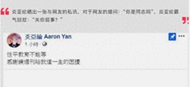 有网友私信炎亚纶询问他是不是同性恋,炎亚纶积极回应并获得支持