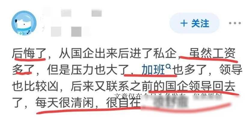除了小李和小王,还有很多网友分享了自己的经历和感受。有人表示后悔,认为国企的待遇和稳定性是无法替代的;也有人表示不后悔,因为他们找到了更适合自己的发展道路。这些不同的声音,反映了每个人在面临选择时的不同心态和价值观。