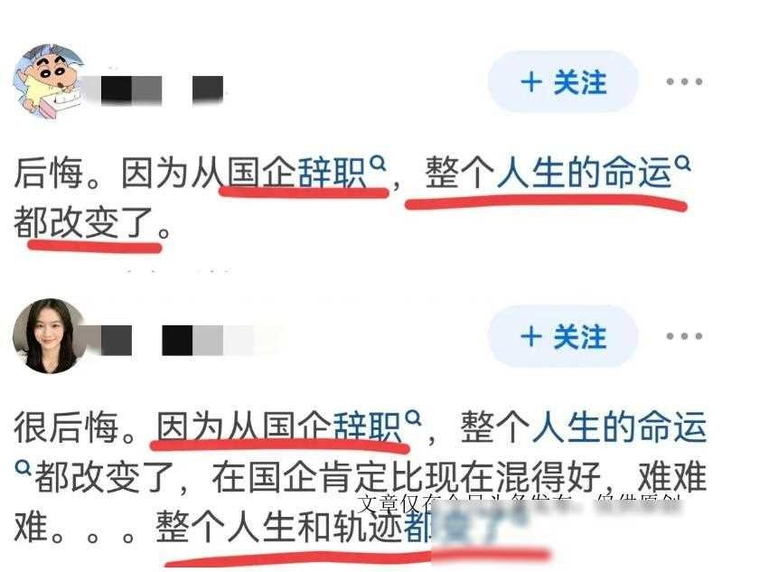 那些辞掉国企工作有后悔的吗?网友:后悔,辞职后整个人生都变了