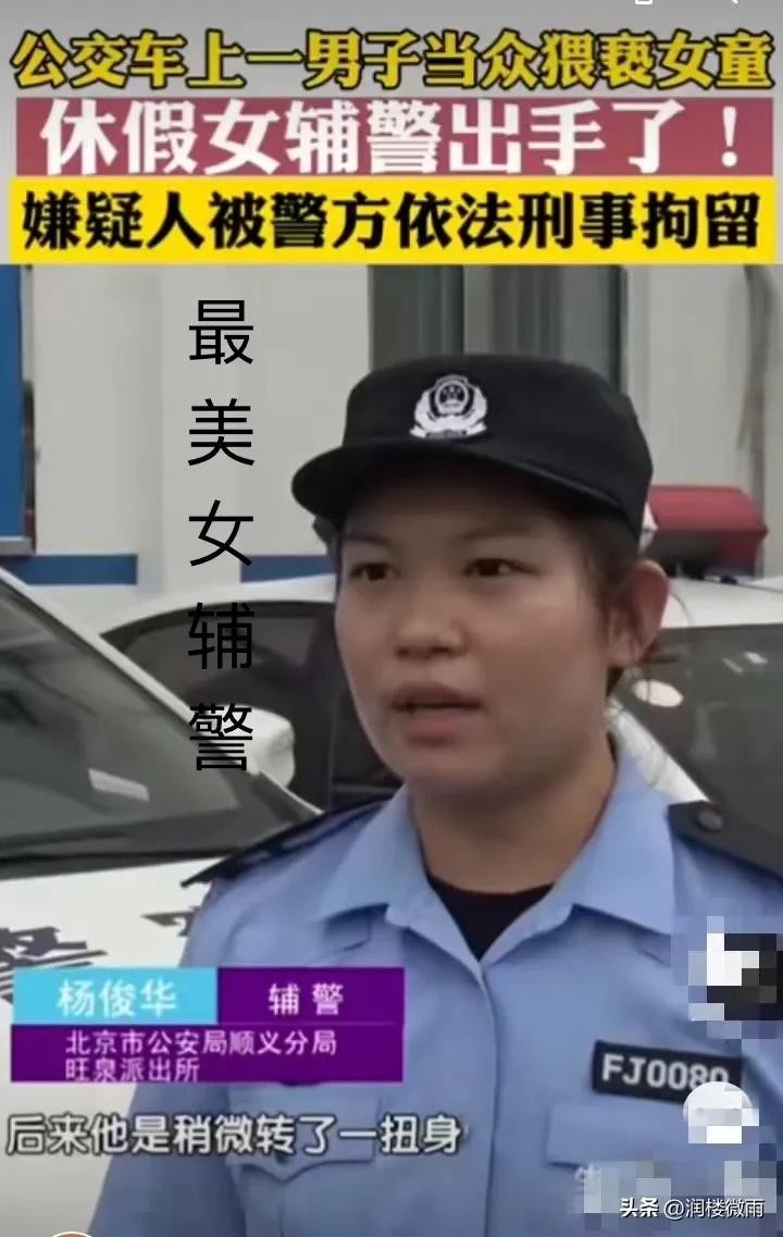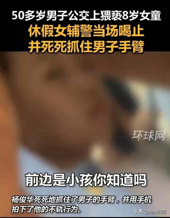 在北京的一辆公交车上,一名50多岁的男子对一名8岁的女童产生了不轨意图,试图进行猥亵。正在休假的女辅警杨俊华恰在公交车上发现了男子的不法行为,她立即厉声喝止:“你手在干嘛呢?”“前面有小孩,你知道吗?”义正言辞且铿锵有力。
