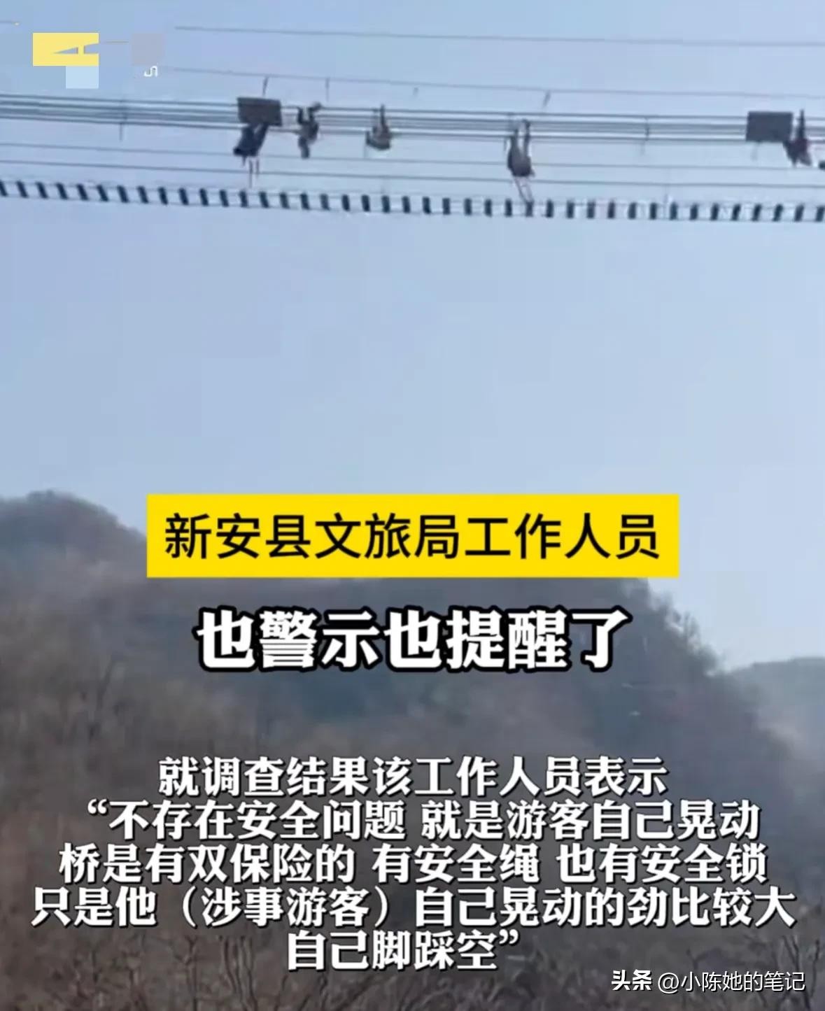 近日,有网友晒出河南洛阳龙潭大峡谷景区的网红桥发生侧翻事件,导致游客倒挂半空中。看到那个场面实在是太危险了。
