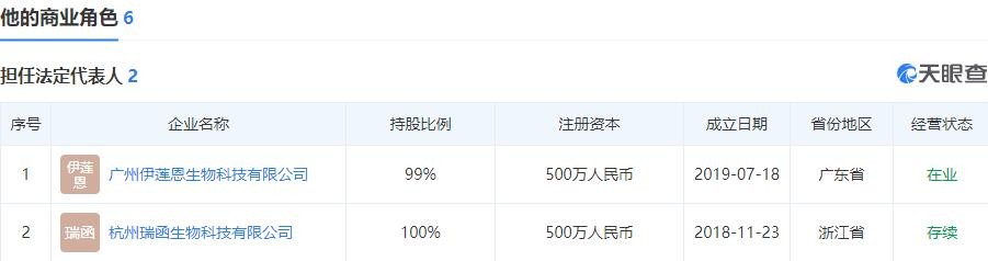 通过天眼查发现他有一家公司在名下,是在杭州和广州的公司,就是不知道是不是杭州或者广东人了。