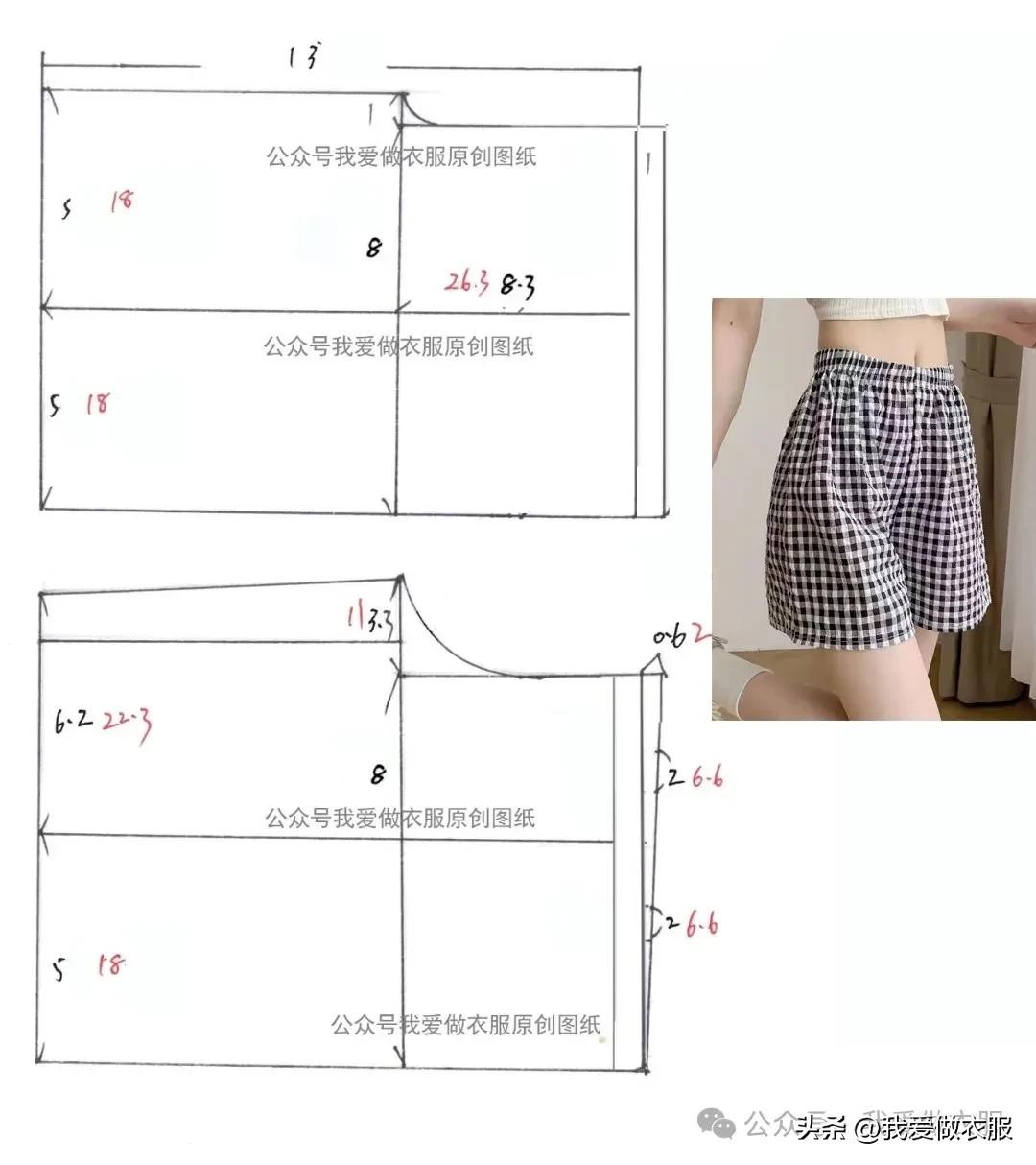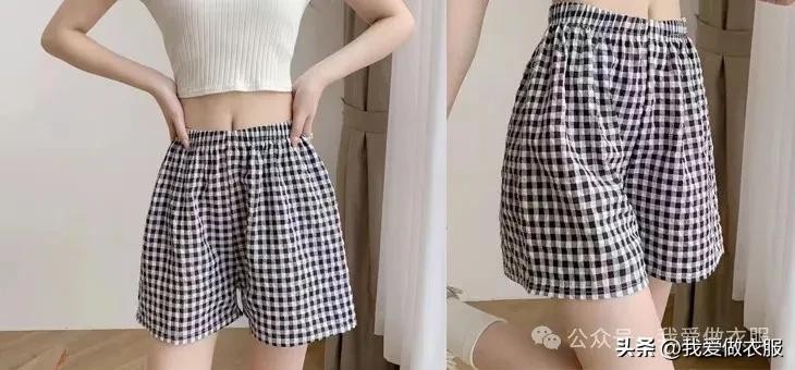 夏季文艺风格子短裤裁剪图,喜欢的拿走用!