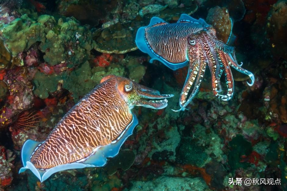 与鱿鱼和章鱼属于同一类的物种,墨鱼不会完全改变它们的性别,但它们可以改变它们的颜色和伪装作为另一个性别。这通常在求偶仪式(交配前)进行,以避免与该地区其他雄性的过度竞争。但聪明并不止于此!墨鱼会像雌性鱼一样改变它们的颜色——一侧显示雌性着色,而另一侧显示雄性着色。确实是一个真正聪明的把戏!虽然很两面派。这不能成为健康墨鱼关系的基础。