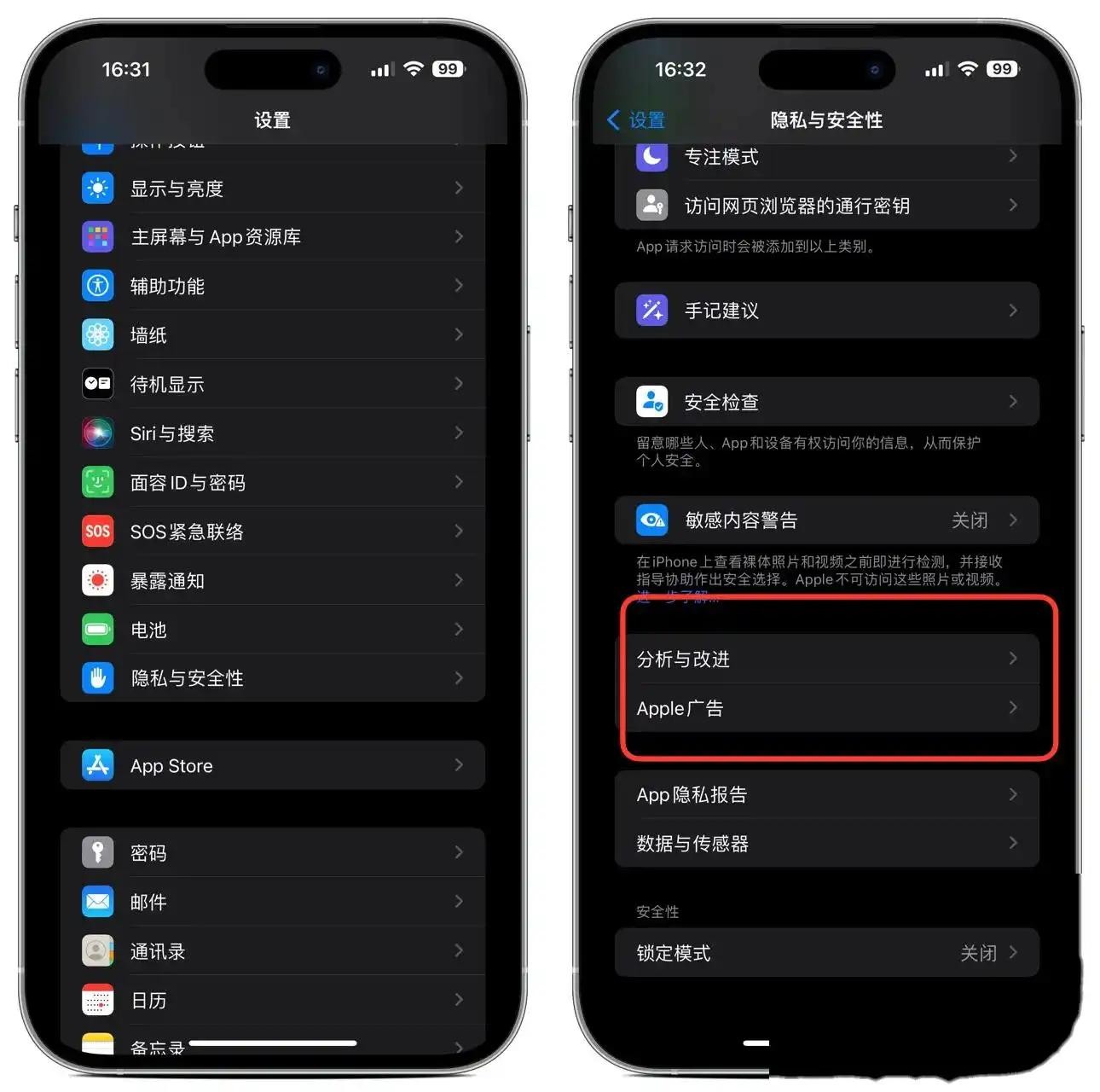 5. 关闭iPhone分析与改进功能
