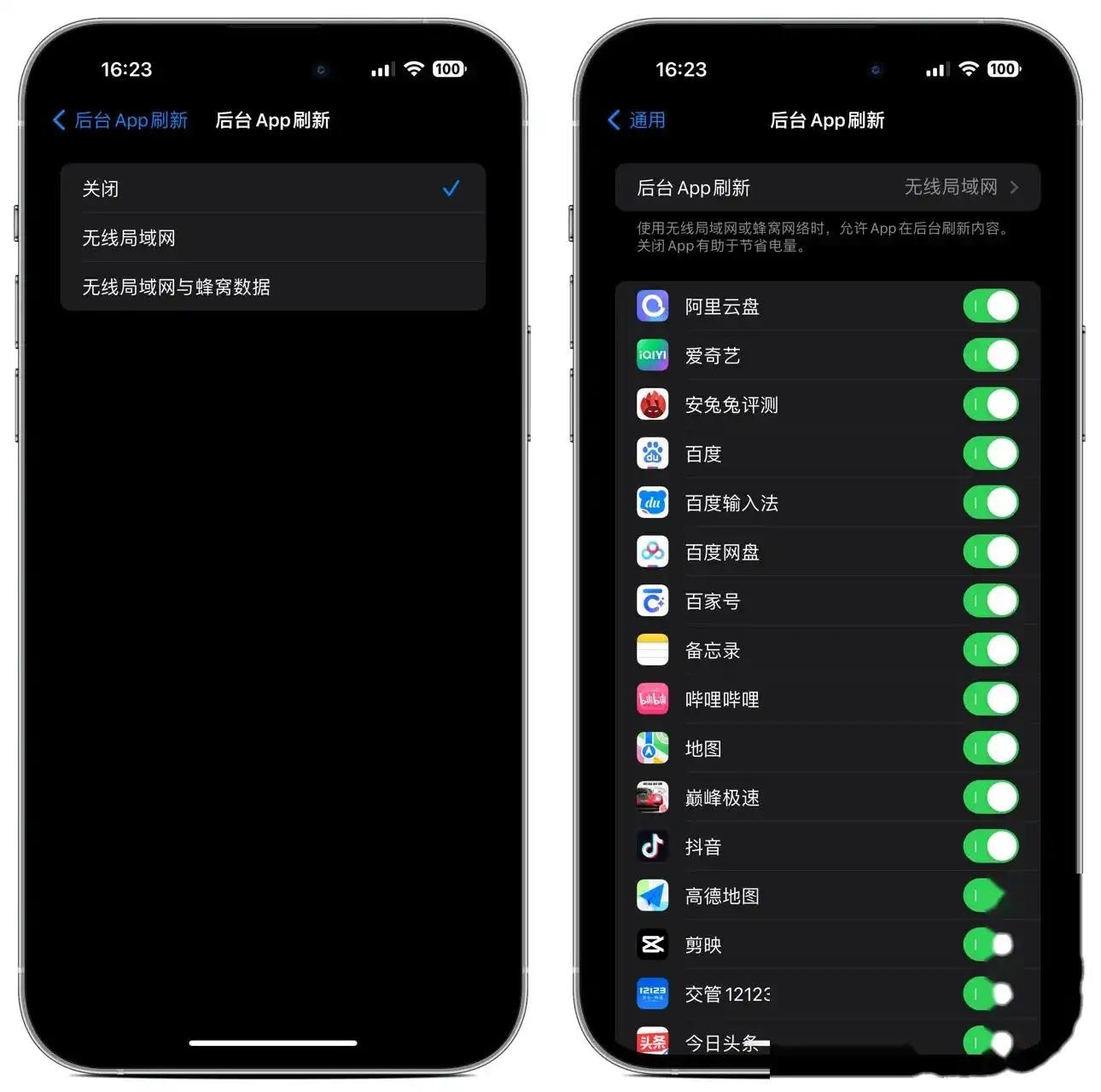 用户可以在“设置”->“通用”->“后台 App 刷新”中找到该功能,用户可以选择关闭所有应用程序的后台刷新功能,也可以选择对某些特定的应用程序进行设置,关闭它们的后台刷新功能。