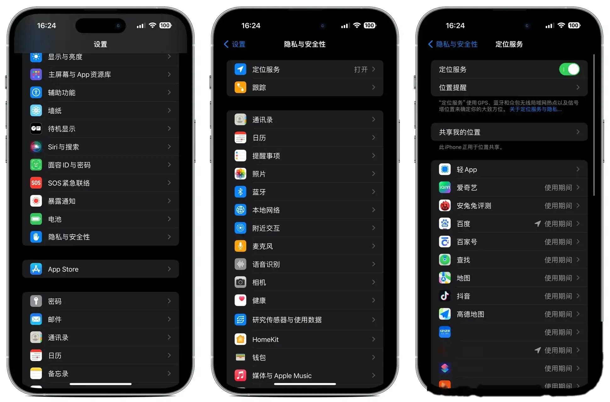 用户可以在“设置”->“隐私”->“定位服务”中找到该功能,用户可以选择关闭所有应用程序的定位服务,也可以对某些特定的应用程序进行设置,选择在使用该应用程序时才开启定位服务。