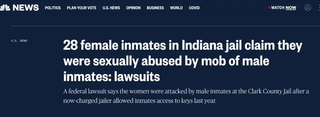 印第安纳州28名女性囚犯分别起诉称,监狱男囚犯花1000美元买下女囚犯牢房钥匙,这28名女性囚犯遭受集体性侵犯。