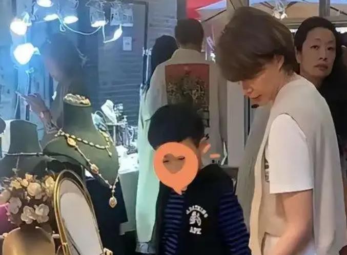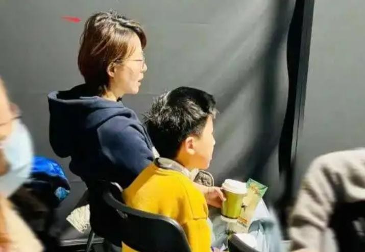 在她身边,儿子的表现也让人印象深刻。小男孩乖巧地跟在母亲身边,偶尔抬头望向她,仿佛在无声地传达着对母亲的依赖和信任。