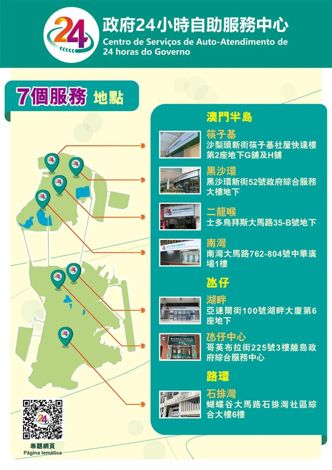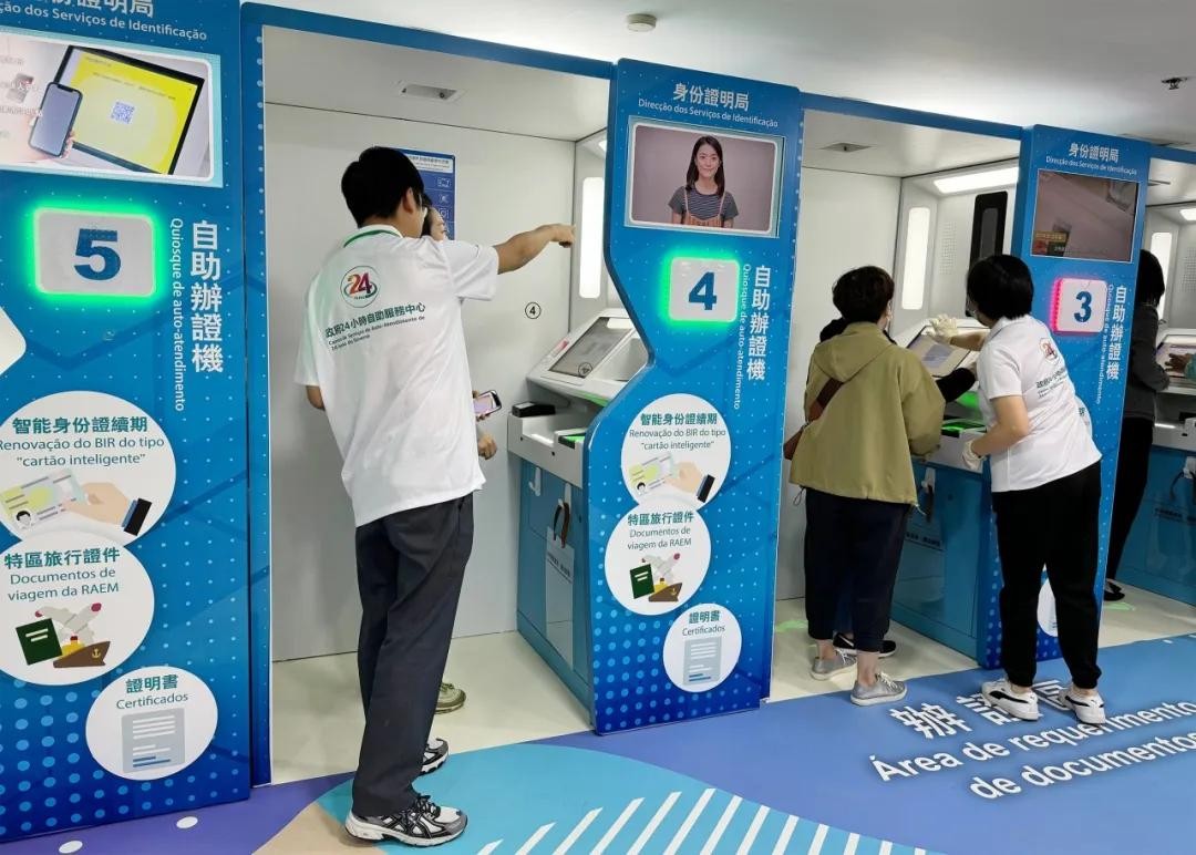 全澳七个政府24小时自助服务中心于2023年12月5日起投入使用,配备新款自助办证机及自助领证机,方便合资格居民全天候自助申领身份证、旅行证件及各类证明书。
