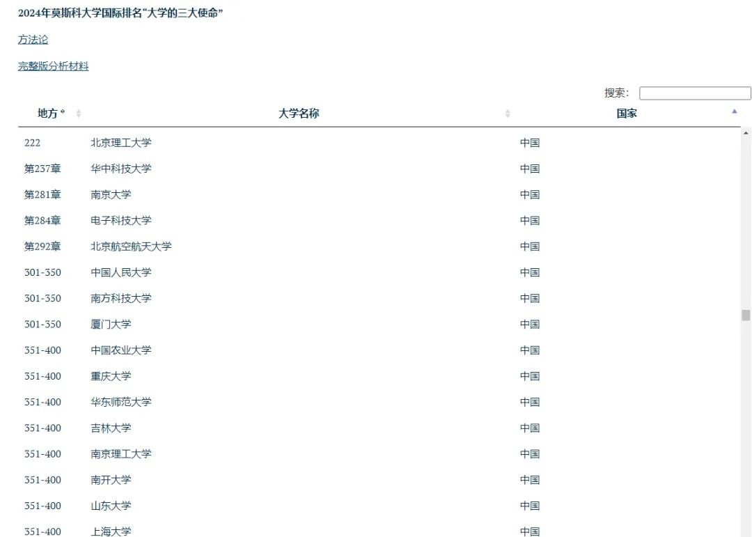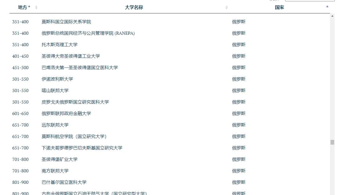 莫斯科国立大学排名第17,这是俄罗斯大学中最好的成绩;其次是圣彼得堡国立大学(第49名)和莫斯科物理技术学院(第54名)。俄罗斯有152所大学进入“三大大学使命”排名,比去年减少了两所大学。