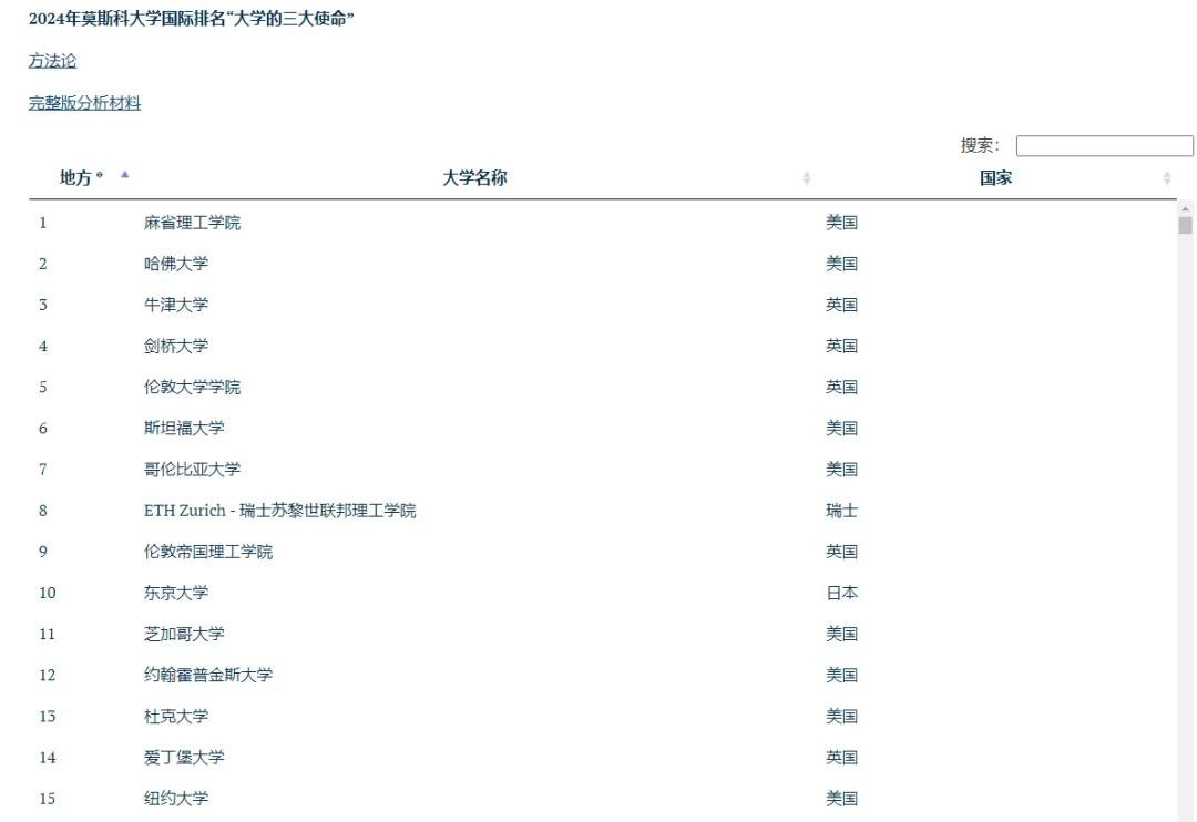 麻省理工学院(美国)哈佛大学(美国)牛津大学(英国)剑桥大学(英国)伦敦大学学院(英国)斯坦福大学(美国)哥伦比亚大学(美国)苏黎世联邦理工学院(瑞士)帝国理工学院(英国)东京大学(日本)