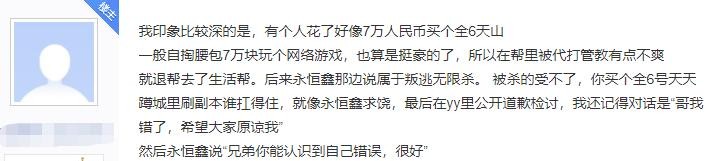 “到yy来说明情况”,许多玩家会把这句话用来调侃永恒鑫对于区内玩家的管控,不过至少从一定程度上来说,天下第一在弑魔家族的领导下,在永恒鑫的管理下,形成了一种非常态的风气。能够认同他们的,哪怕是耗费几万买号、打造号的玩家,有了过错也要“到yy说明情况”,不认同的,要么卖号要么转区。