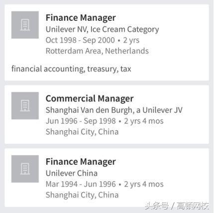 这位CFO爸爸钱方的领英页面显示,90年代初从伦敦政治经济学院毕业后,一直在联合利华做了6年的财务经理Finance Manager,期间还去联合利华的荷兰总部工作过两年,回来后升任财务总监Finance Controller。从大儿子的年龄来看,大约这个时候,这位CFO才考虑生孩子的问题,毕竟每个父母都希望能给孩子提供更好的物质条件。