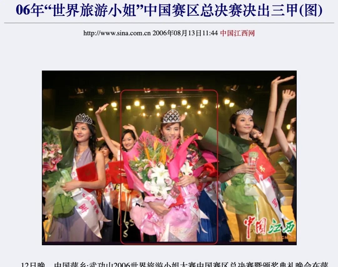 16岁那年,她初试啼声,参加了“世界旅游小姐”中国赛区的比赛,并一举夺冠,成为了中国旅游事业的形象大使。