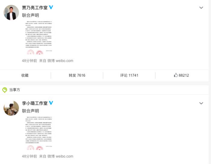 11月14日晚,贾乃亮、李小璐双方发布联合声明,宣布两人已签署离婚协议并办理完离婚登记,并称这是双方在尊重彼此的基础上作出的慎重决定。至此,两人还是没熬过“七年之痒”,七年的婚姻正式分道扬镳。