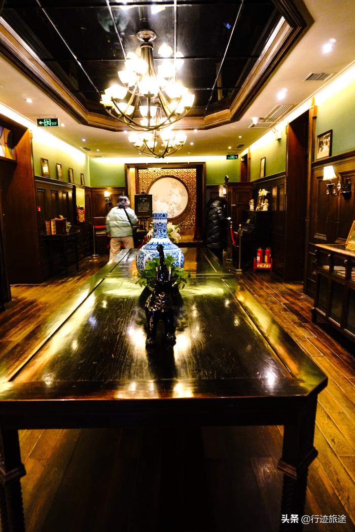 在那个时代来参加这么高级的宴会是非常注重衣着和形态的,所以一进入大门就能看到麻花穿衣镜,这个就是不管进出用来整理仪容的。同时是是八字形,也代表着招财的意思,其实看了很多古建筑,基本上所以的古建筑在设计和建造上面都有以下一定的含义和寓意的。