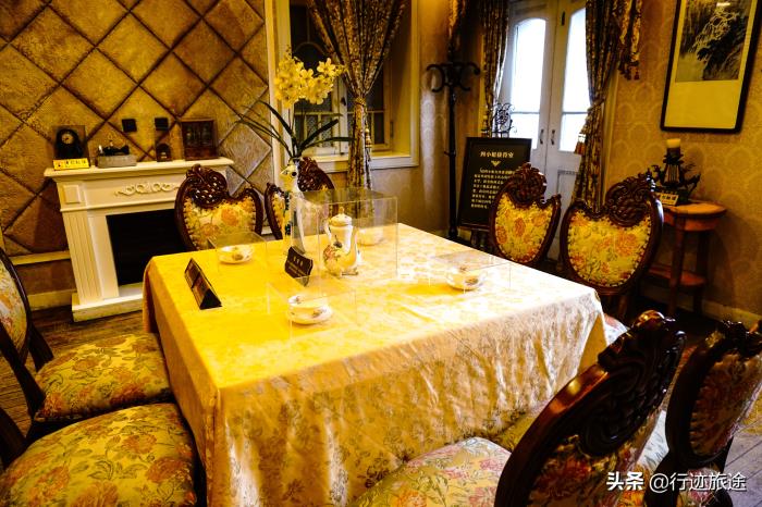 在大厅右侧就是当时张学良接待外国人的接待室和西餐厅,因为来摆放张学良的人很多,也有很多外国人,所以设置了西餐厅。
