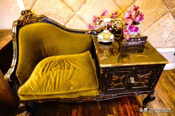 在这个西式厅的角落一件很多独特的物件,经常看电视剧的一眼就能认得出来,这个就是罗汉床,这个在清朝和民国的影视剧经常能看到,就是很多人躺着上面,张学良也不例外,听说张学良当年也在这个地方吸烟。1925年的时候张学良因为特别的事情染上烟瘾,最后在宋子文的帮助下戒掉了烟瘾。