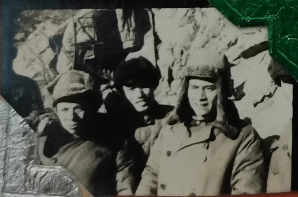 张仁初军长(左二)和张钰秀副军长(左一)在三八线前线阵地看地形。