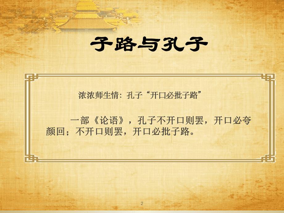 子路小孔子九岁,既是孔子的弟子又是孔子的保镖,还是 唯一一个敢顶嘴的孔门弟子。深受夫子各种嘲讽和疼爱。