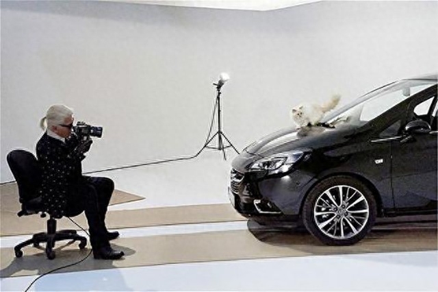 卡尔有灵感的时候,会抱着Choupette一起照相;或者说,有时候会特意安排,给Choupette出专辑和写真。