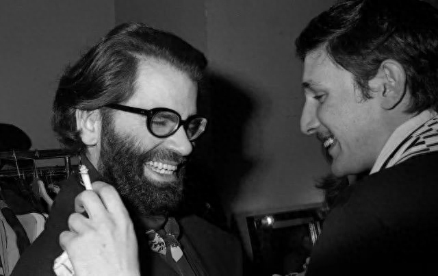 那是在卡尔的生日宴会上,Jacques de Bascher认识了圣罗兰。圣罗兰被称为“时尚教父”,和卡尔有着近20年的友情。