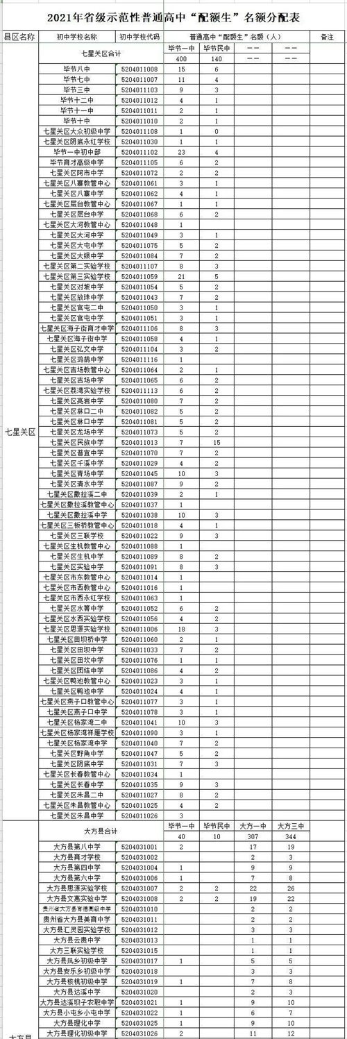 2.毕节一中和毕节民中原则上面向全市配额,并适当向没有省级示范高中学校的县(区)倾斜,其他省级示范性普通高中原则上在本县(区、市)范围内配额。