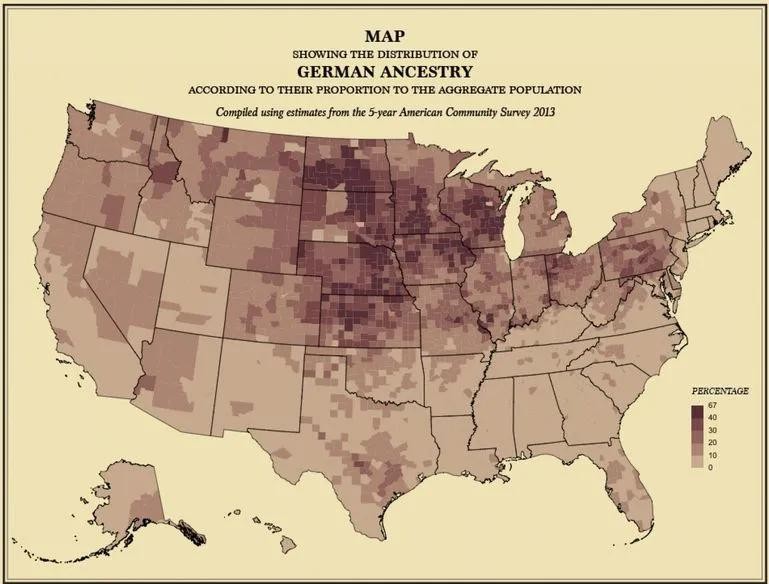 美国德裔人口比例图(美国族裔最多的群体就是德裔,本人也是德裔)