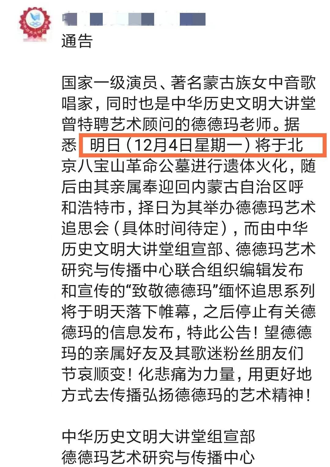 德德玛追悼会现场曝光!黄晓明韩红送花圈悼念,上千网友排队送别