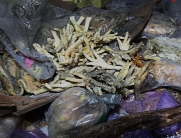 今天我就给大家揭秘一下无骨鸡爪它分为两种,一种的是从美国还有巴西运过来的,至少冻了两三年以上,品质都特别的低,价格的话也特别便宜,摊贩给他们寄过来之后,用甲醛活碱给它一起泡发,泡发出这个鸡爪就会又大又白,这样的鸡爪营养价值你就不要提了,而且对我们的身体是一点好处都没有,那么吃了这个东西就相当于你在吃甲醛。
